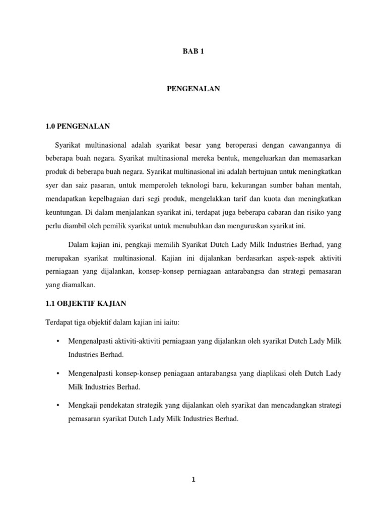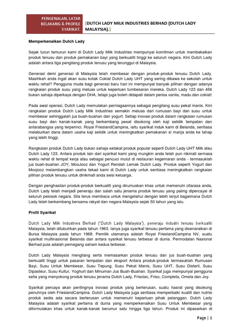 Latar Belakang Kajian Docx 3 0 Latar Belakang Kajian Dutch Lady Milk Industries Berhad Dutch Lady Malaysia Peneraju Industri Tenusu Berkualiti Course Hero